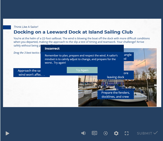 By repeating a cohesive color palette, button styles, and typography across slides, I established a polished, unified look and feel. As noted in my feedback, this repetition provided a strong visual anchor, allowing learners to focus more on content and less on deciphering new layouts from slide to slide.